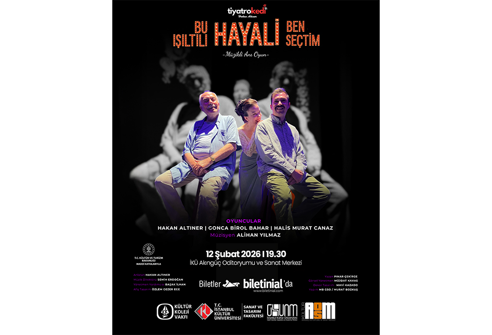 İKÜ Güzel Sanatlar Uygulama ve Araştırma Merkezi (GSUAM), "Bu Işıltılı Hayali Ben Seçtim" isimli tiyatro oyununu sanatseverlerle buluşturacak. Oyun, 12 Şubat 2026 Perşembe günü saat 19.30’da Bakırköy yerleşkesi Ataköy binasındaki Akıngüç Oditoryumu ve Sanat Merkezi’nde sahnelenecek.